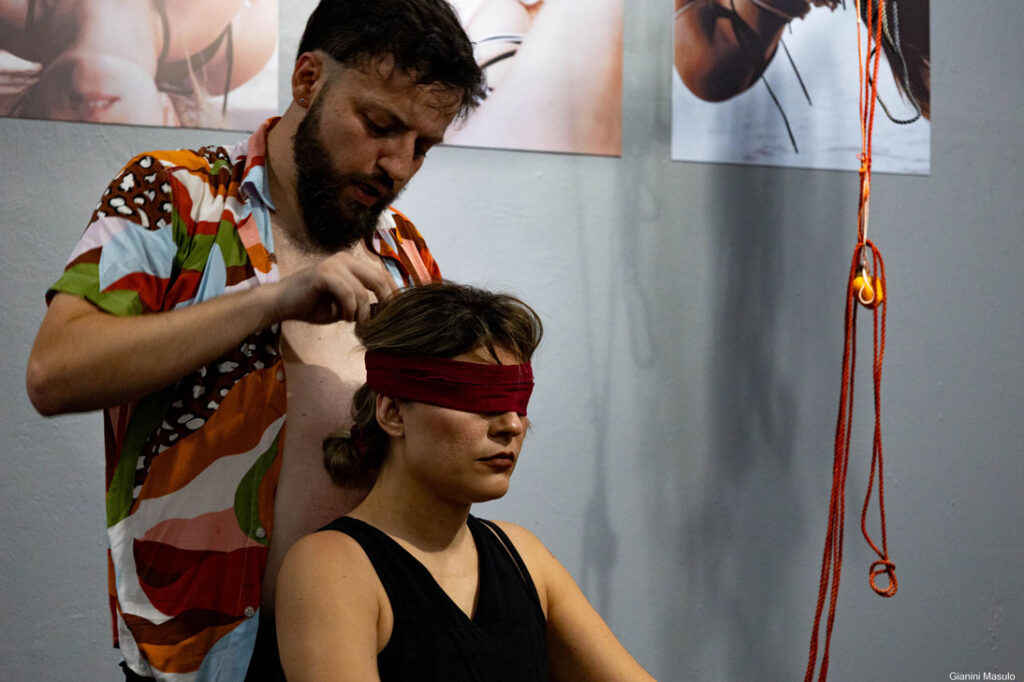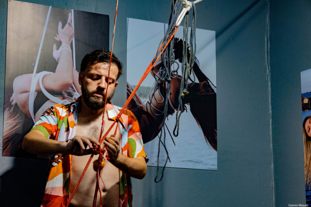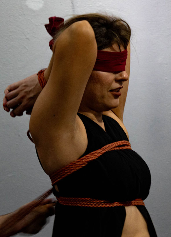 Suelen: “Foi através de um conhecido que prefere se manter anônimo o contato prático com quem me apresentou o Shibari. De início, me despertou curiosidade, pois era algo que eu não conhecia. Quanto mais eu pesquisava, mais percebia que ali havia uma linguagem artística que estava sendo subutilizada. Como tenho formação em dança, vi que havia algo a ser explorado e que dialogava com o meu trabalho, então comecei a pensar em formas de fazer esse casamento entre as linguagens artísticas.”